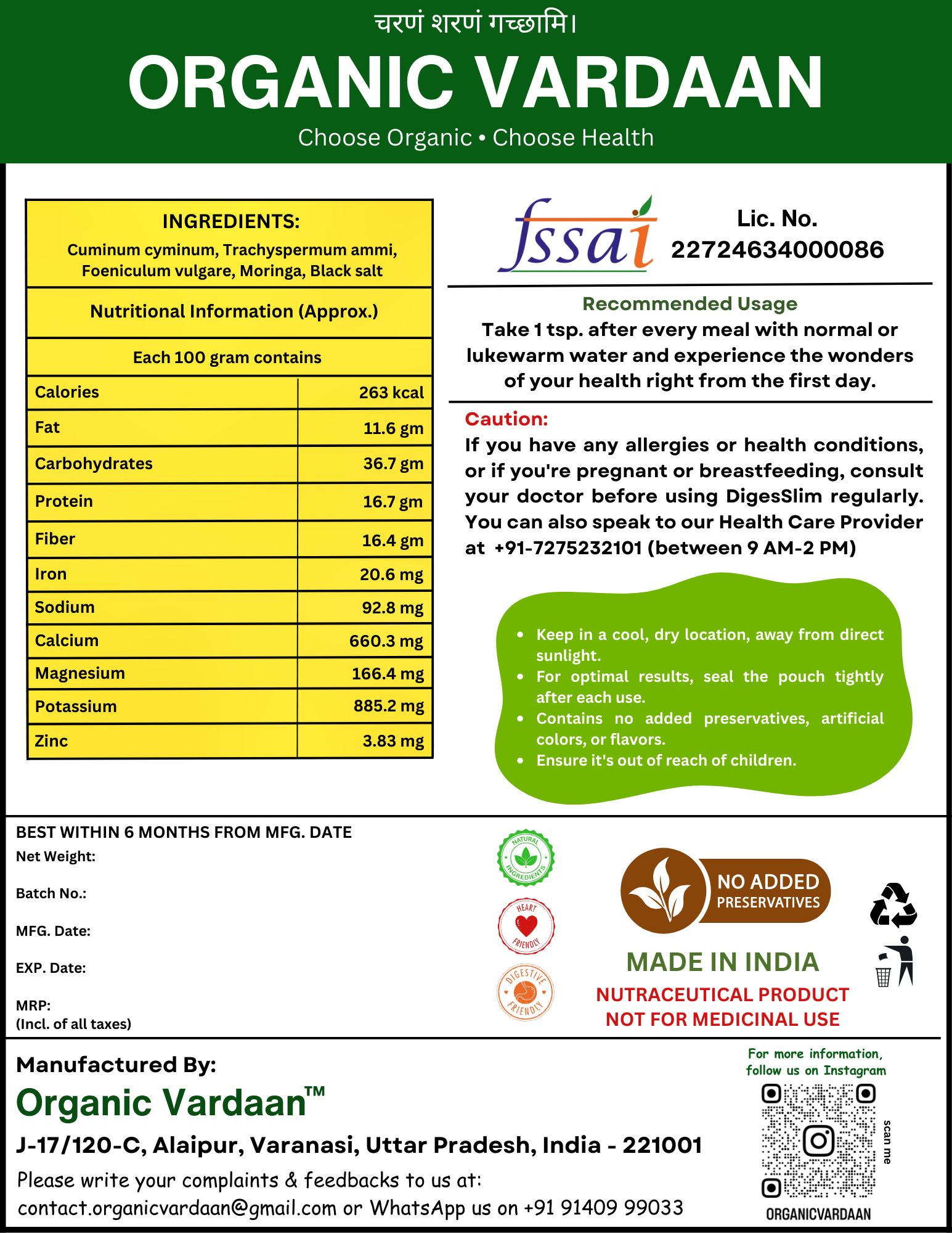 Organic Vardaan- DigesSlim Powder | Helps in Weight Management | Helps in Digestion after Eating | Promotes Hair Growth | Relieves Joint Pain | Relief from Acidity and Acid Reflux