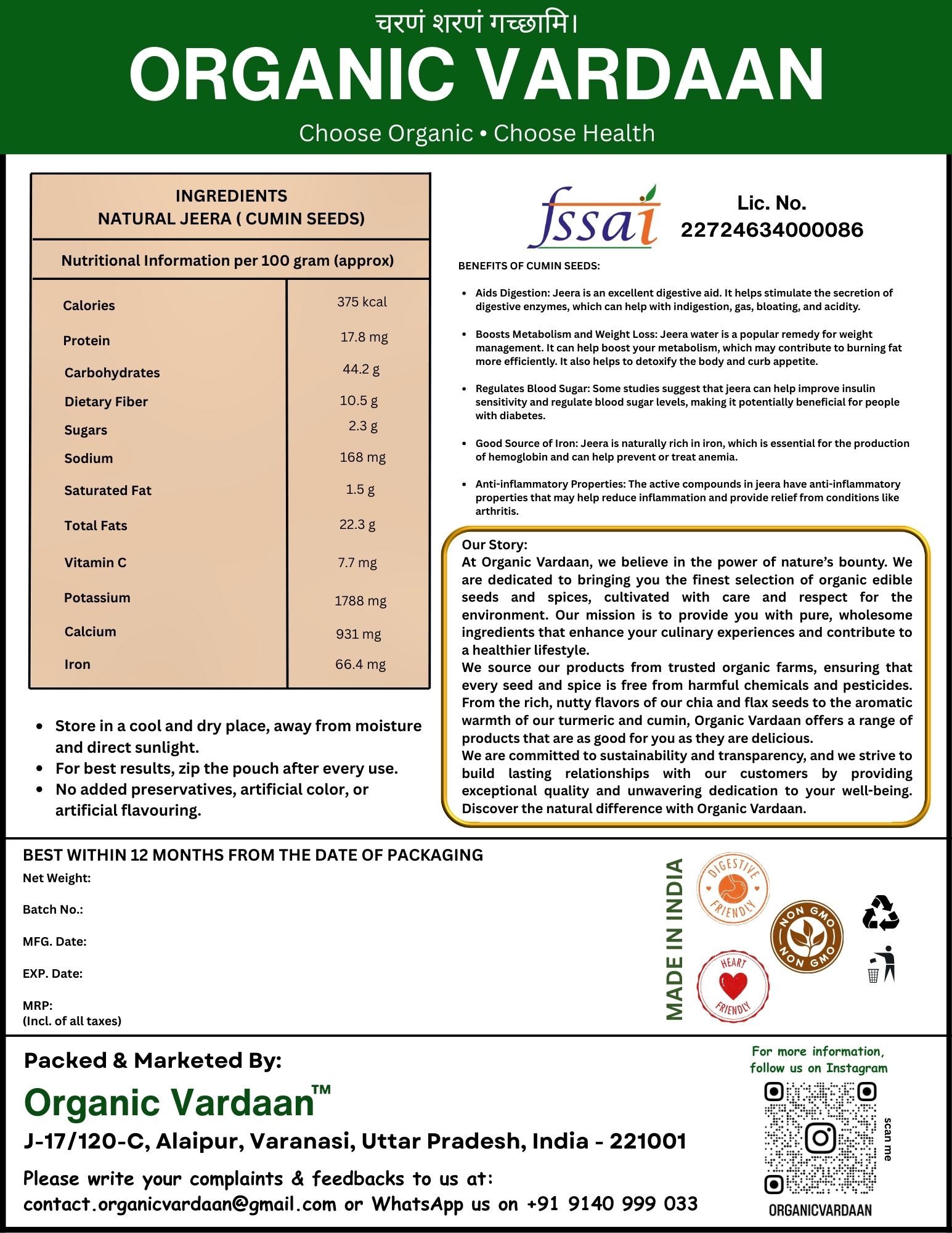 - Rich in Nutrients: Vardaan Organic Fennel Seeds are a great source of dietary fiber, minerals like potassium, calcium, magnesium, and iron, and vitamins. Even in small quantities, they provide a concentrated dose of these essential elements, supporting your overall health.